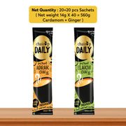 Chaizup Daily 1 Min Instant Assorted Tea Pack - 40 Sachets | Elachi & Adrak Flavours | 40 Servings | 2 Packs (20 Sachets Each) | 280g
