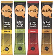 Chaizup Instant Premix Masala + Cardamom + Ginger + Saffron Tea Sachets | Assorted Combo Pack Of 4 Flavors | 32 Sachets | Instant Premix Tea Powder
