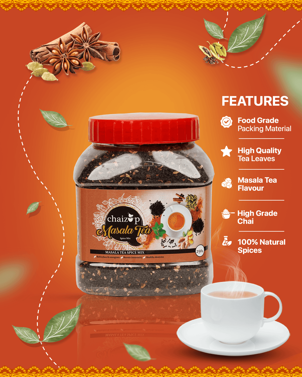 • Our premium Masala Tea carries the authentic flavours of traditional Masala chai. Infused with the goodness of Indian spices, the premix is sure to elevate the quality of your morning chai.